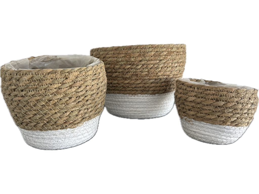 Sada květináčů z trávy 3ks natur/bílá-25,18,15cm
